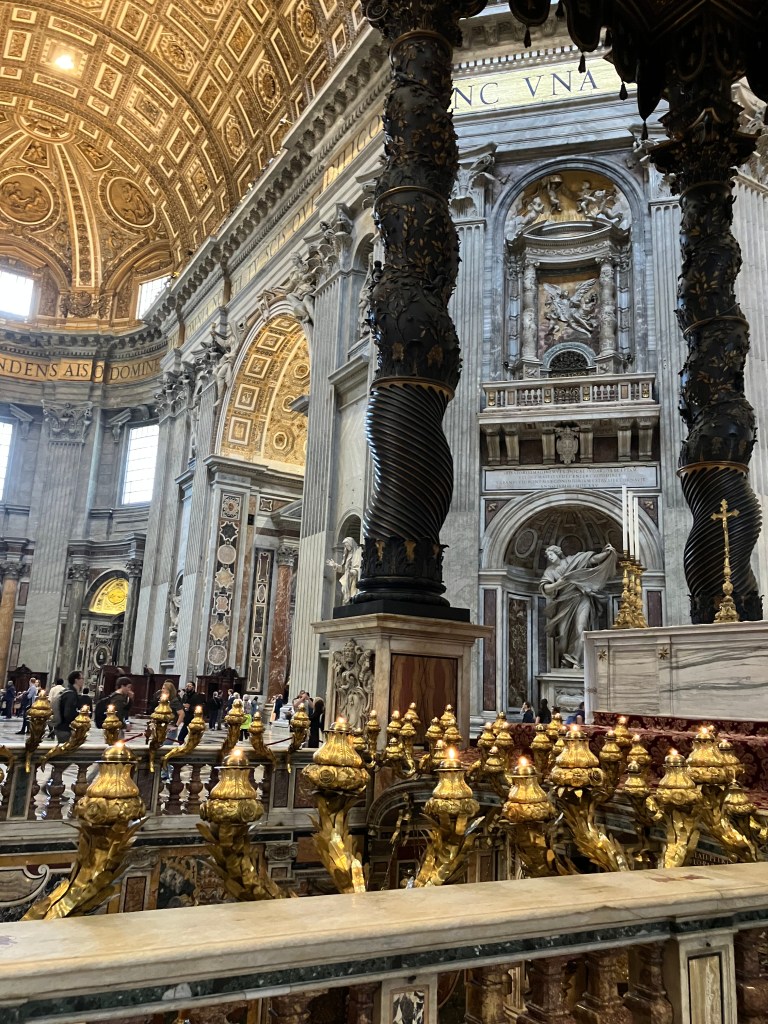 Little here to make the heart soar; I thought longingly of Celtic spirituality which de-emphasizes the role of church and instead looks to God’s shining throughout creation. Probably a personal preference and maybe a quirk of character, but guess where I felt closer to God—St. Therese’s or St. Peter’s?